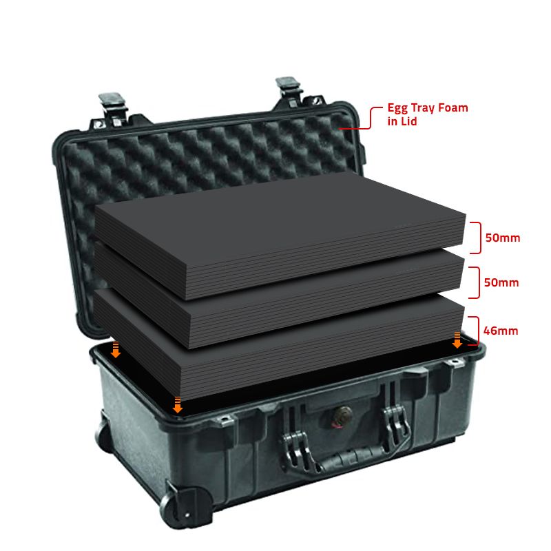 - 2 Lagen Multilayer Schaumstoff 50 mm + 1 Lage Schaumstoff 46mm + Noppenschaumstoff für den Deckel