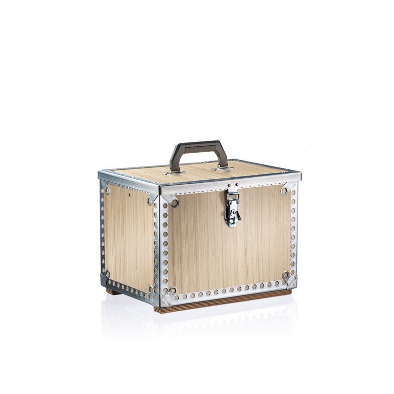 Die Woody Box™ wird aus hochwertigem Birken-Sperrholz mit verzinkten Metallscharnieren und -ecken hergestellt.